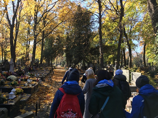 Zapalaliśmy kolorowe znicze na ich grobach. Spacer alejkami cmentarza był dla harcerzy dużym przeżyciem, szli skupieni i bardzo zaciekawieni. W czasie wycieczki, uczniowie poznawali tradycje, zwyczaje związane z nadchodzącym świętem Wszystkich Świętych . Harcerze ze SP nr 6 starali się zachowywać na cmentarzu tak, aby nie zakłócać spokoju zmarłych i osób odwiedzających to miejsce.