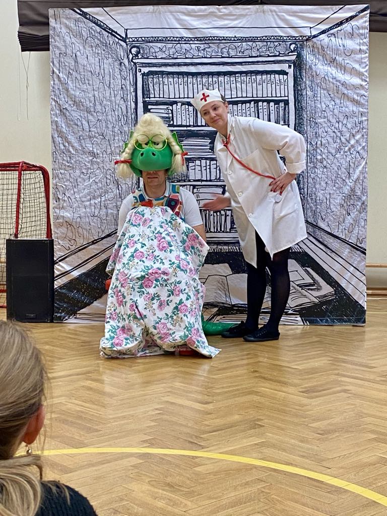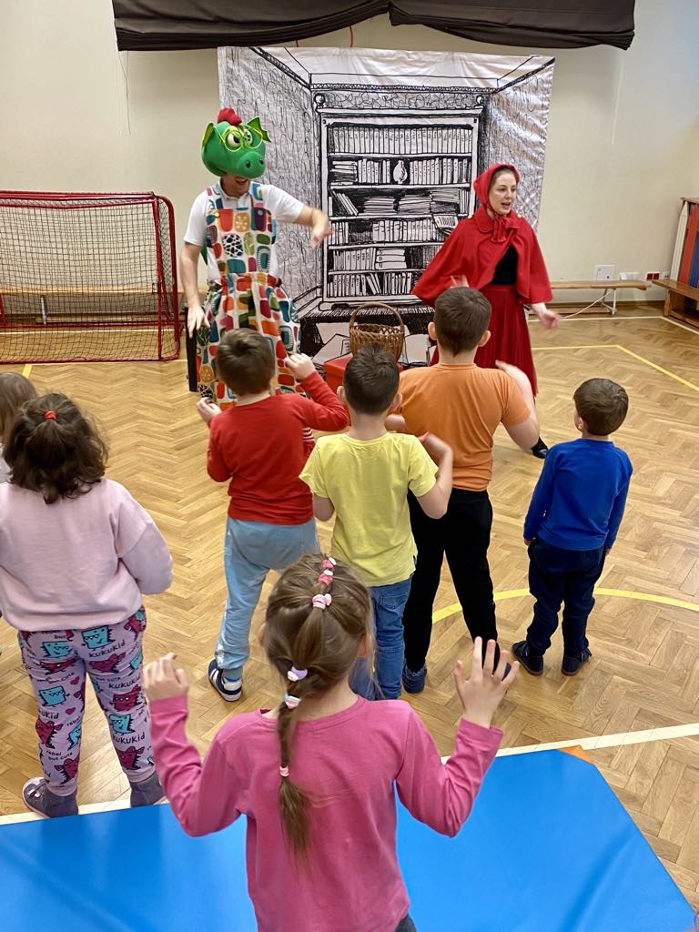 Dzieci miały okazję przeżyć wspaniałą przygodę. Razem ze Smokiem podróżowały po świeci bajek napisanych przez Jana Brzechwę tj. "Kaczka dziwaczka", "Katar", "Żuk", "Leń" oraz bajce o "Czerwonym Kapturku." Dziękujemy Teatrowi TAK za wizytę, a dzieciom za fantastyczną energię – czekamy na kolejne, równie wesołe spotkania!