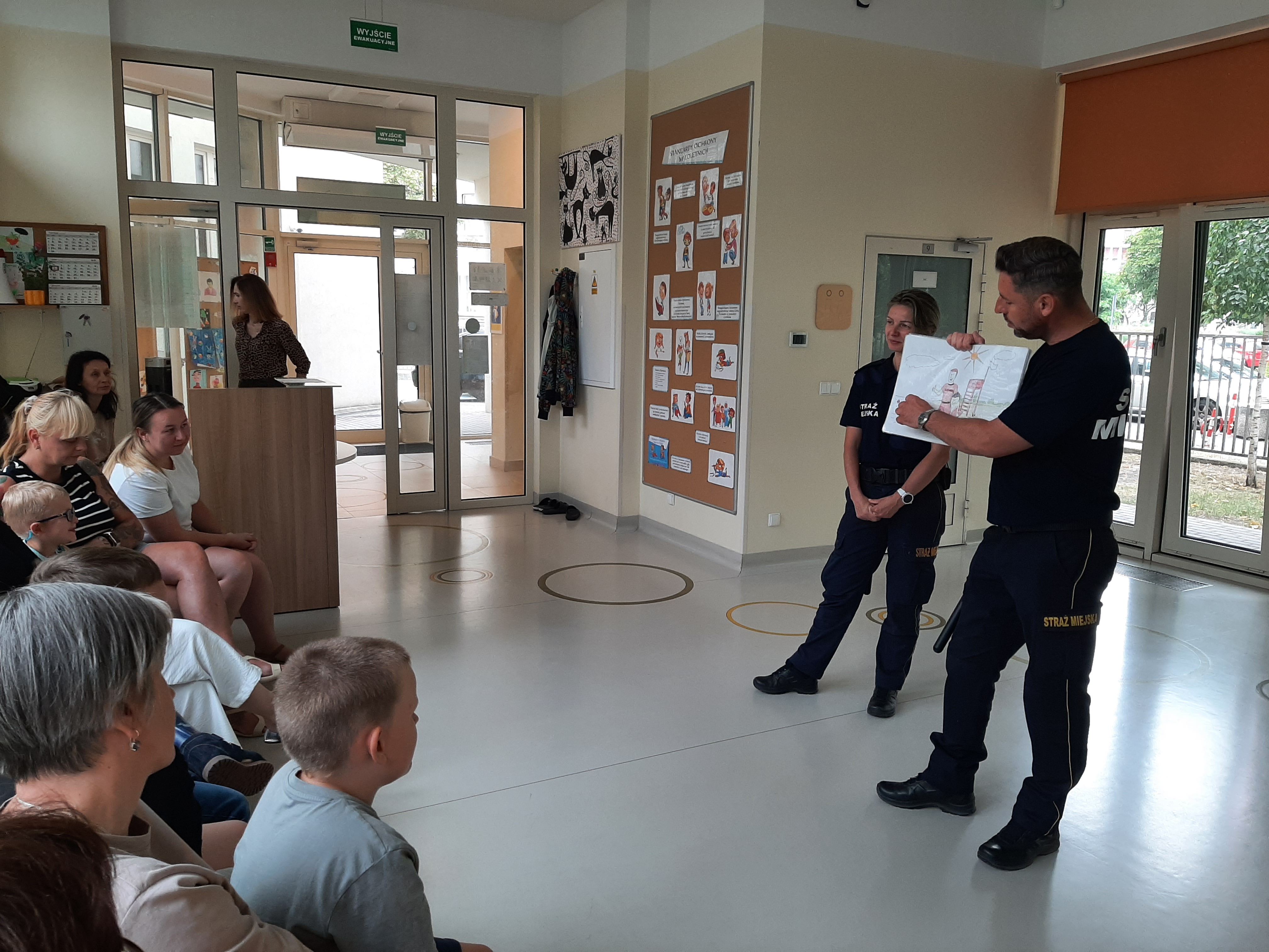 W poniedziałek, 7 lipca, nasze przedszkole odwiedziła Straż Miejska. Pracownicy z referatu profilaktyki straży miejskiej w Warszawie zapoznały wszystkie dzieci z zasadami bezpiecznego wypoczynku nad wodą.