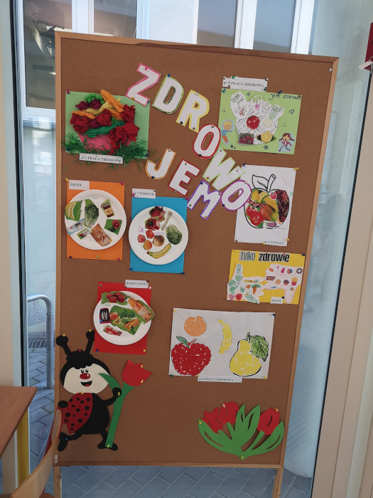 W ramach prowadzonego w ZSP nr 10 projektu wychowawczego pt. ,,Przedszkolaki zdrowe i aktywne dzieciaki" dzieci z wszystkich grup przedszkolnych wzięły udział w konkursie plastycznym promującym zdrowe nawyki żywieniowe pt. ,,Jem zdrowo".