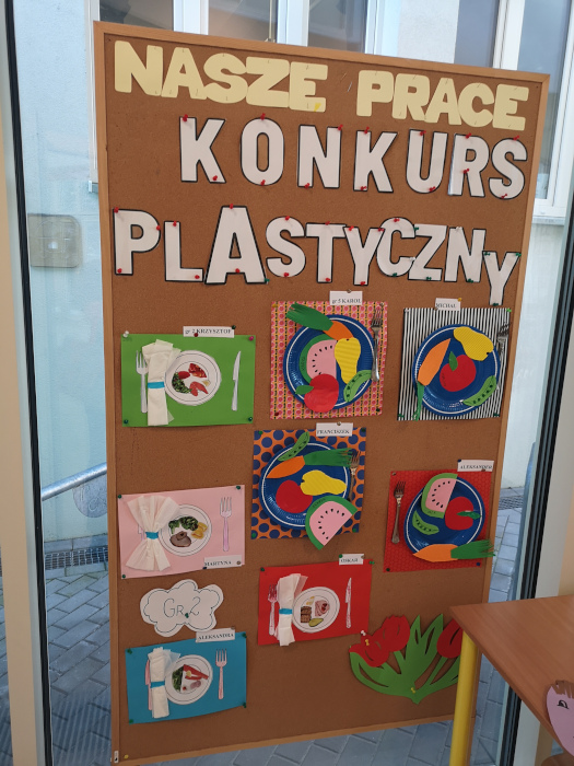 Przystępując do wykonania prac plastycznych wychowawcy grup przypomnieli dzieciom zasady zdrowego i racjonalnego odżywiania się, a następnie wszyscy z zaangażowaniem dołączyli do twórczej zabawy plastycznej. Wykonane przez dzieci prace plastyczne zachwycały kolorystyką, różnorodnością technik i pomysłowością. Pani Dyrektor Ewa Warszewska pochwaliła dzieci za zaangażowanie włożone w przygotowanie prac plastycznych i rozdała przedszkolakom dyplomy.