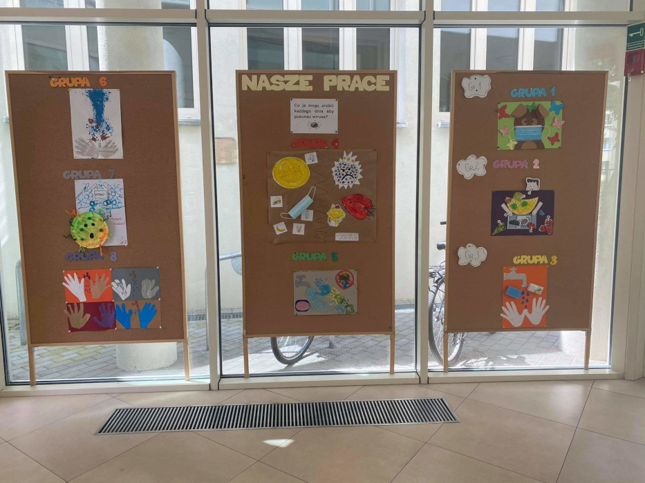 Każdy z przedszkolaków miał możliwość obejrzenia teatrzyka, uczestniczenia w grach edukacyjnych i eksperymentach. Na koniec projektu, w każdej z grup zostały przeprowadzone zajęcia plastyczne pt: "Co mogę zrobić każdego dnia, aby pokonać złe bakterie i wirusy". Przedszkolaki dzielnie pracowały, aby stworzyć wspólne, grupowe prace. Plakaty zostały wywieszone na wystawie, którą można podziwiać w holu przedszkola.