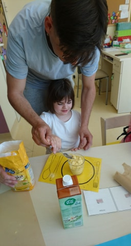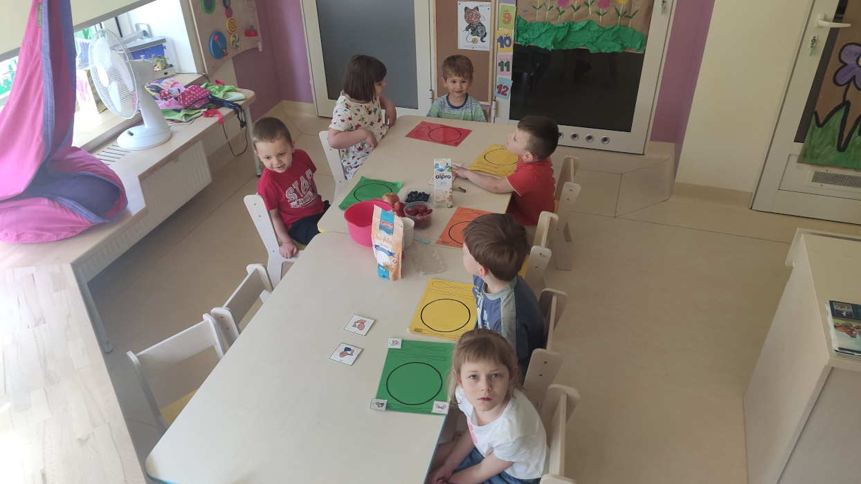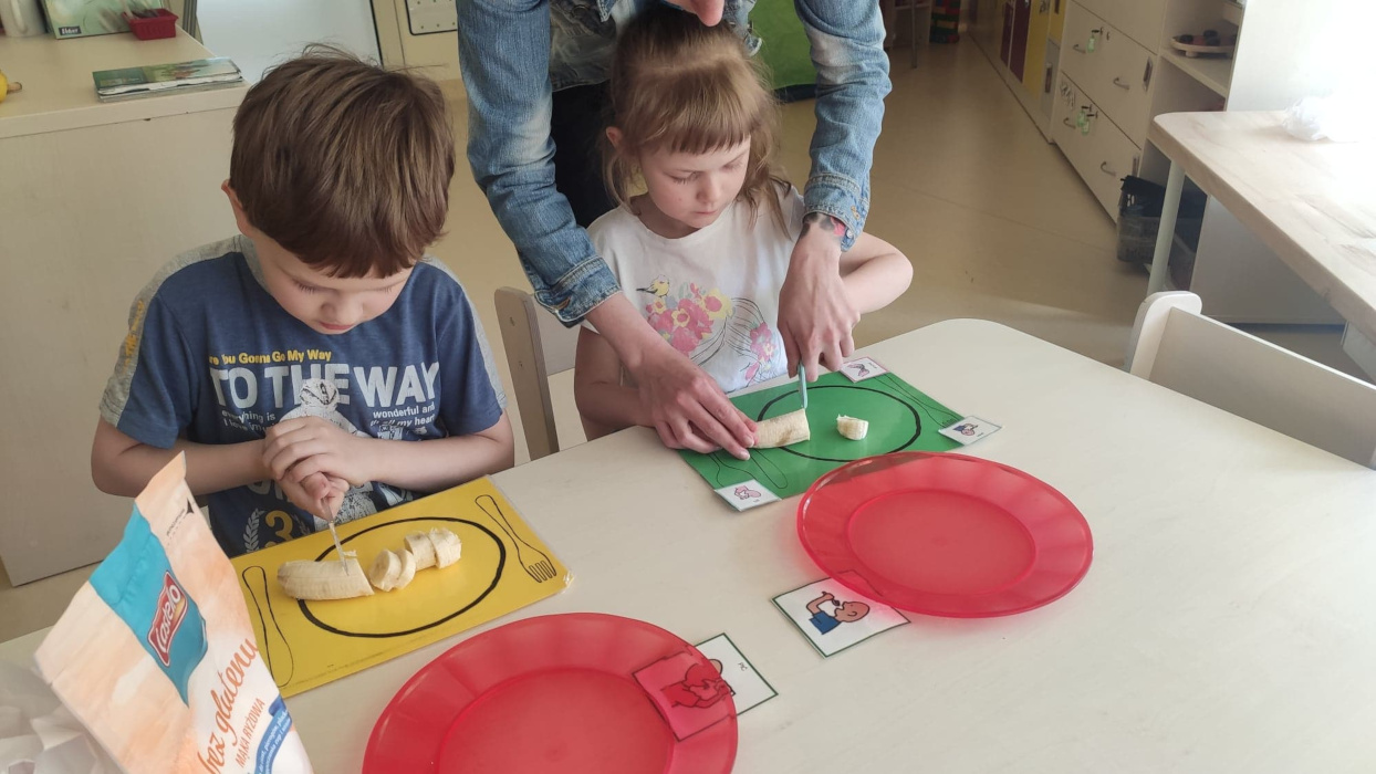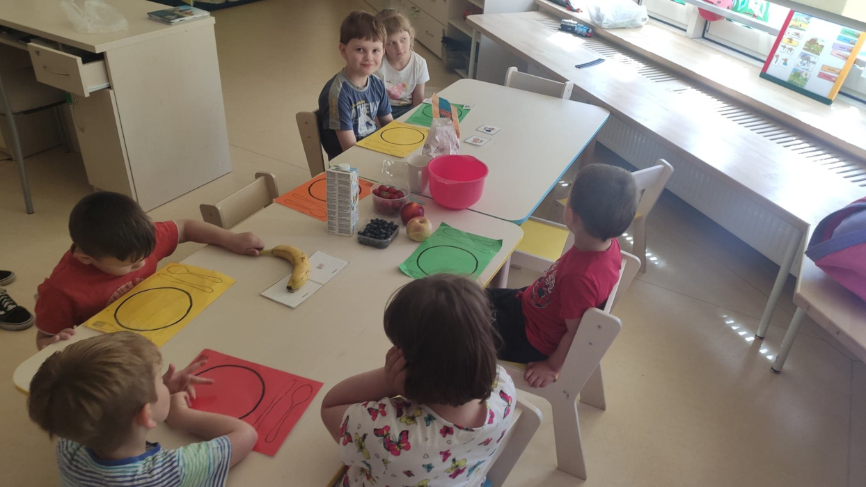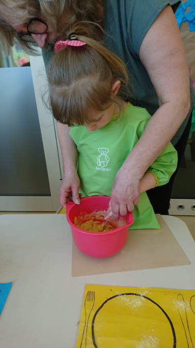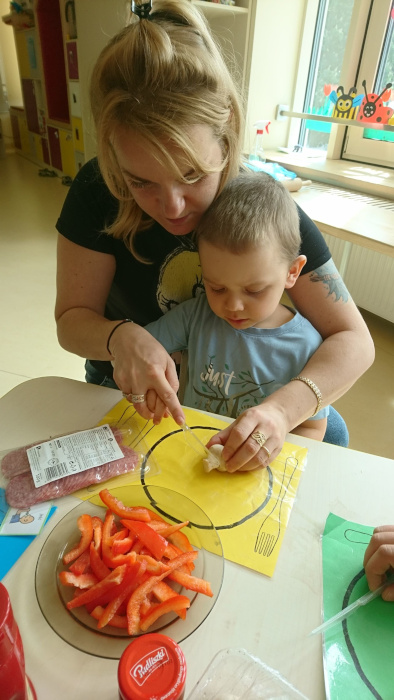Dzieci z grupy pierwszej i czwartej spotykają się na wspólnych zajęciach, podczas których pod okiem wychowawców mogą spróbować przyrządzić ulubione przez wszystkich popularne potrawy, co jest doskonałą okazją do wzbogacenia samodzielności, sprawności sensorycznej i manualnej małych mistrzów kulinarnego świata.