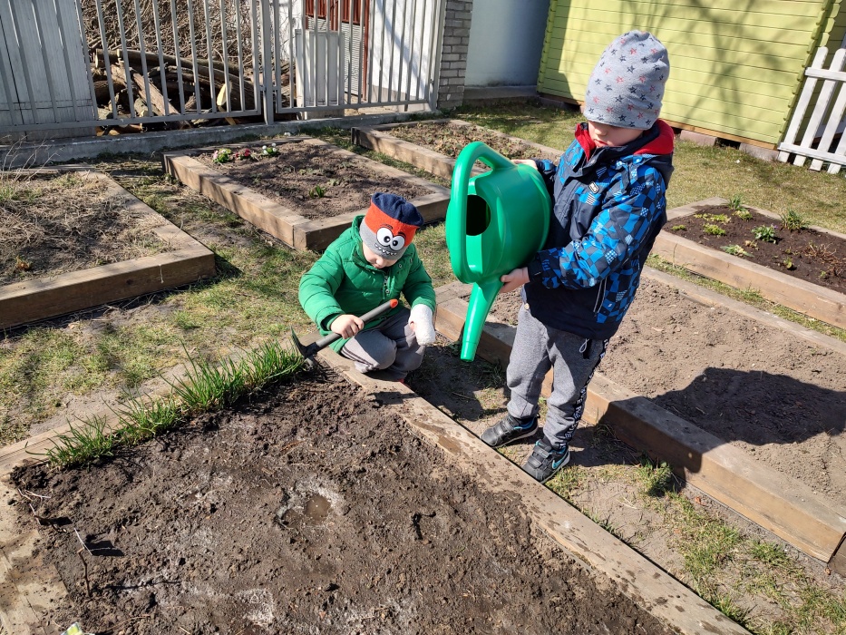 Wiosna w raz z pierwszymi ciepłymi promieniami słońca, zachęca wszystkich do ogrodniczych prac. Nasze przedszkolaki z grupy pierwszej nie zapominają o swoim przyrodniczym kąciku w sali, a także o grządkach w przedszkolnym ogrodzie.