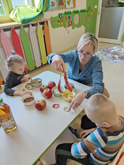 Owoce jesieni były tematem przewodnim ostatnich dwóch tygodni w grupie pierwszej. Dzieci uczestnicząc w zajęciach edukacyjnych oraz zabawach sensorycznych miały możliwość degustacji jabłka, gruszki, śliwki.