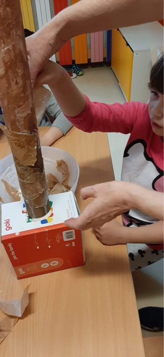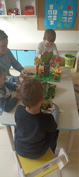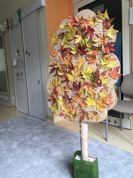 Zostały przygotowane dwie prace konkursowe. Dzieci z grupy 4 przygotowały prace przestrzenną pt. ,,Jesienny las”. Grupa 7 i 8 przygotowała instalacje pt. ,,Kolorowe drzewo”. Przedszkolaki dobrze się bawiły podczas zajęć plastycznych. Malowały farbami, wycinały, przygotowały masę papierową. Wykorzystały naturalne dary nowej pory roku. W naszych salach zrobiło się jesiennie.