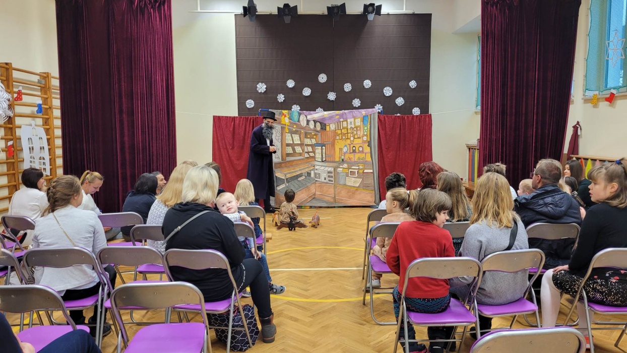 Na tegoroczne spotkanie wigilijne przyjechali do nas niezwykli goście, prawdziwi artyści, którzy przygotowali dla naszych przedszkolaków wspaniałe przedstawienie teatralne. Aktorska grupa Eden, opowiedziała nam historię pt. „Niespodzianka od serca”. Była to opowieść o chłopcu, który wyruszył na poszukiwania prezentu dla swojego brata. Nie było to jednak takie proste i bohater tej przygody musiał zmierzyć się z różnymi wyzwaniami. Emocji nie brakowało, a okazji do śmiechu w szczególności. Po szczęśliwym zakończeniu, wszyscy nagrodzili aktorów gromkimi brawami.