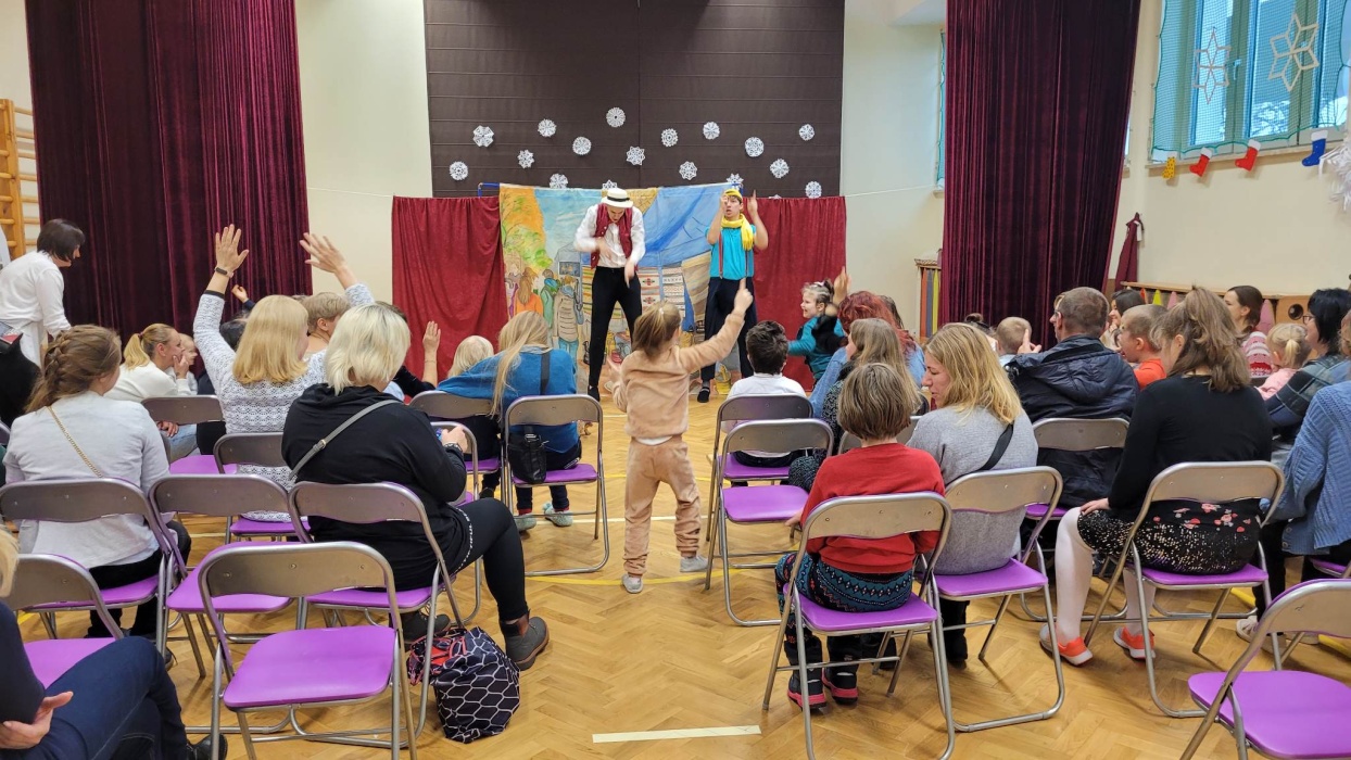 Dnia 22 grudnia 2022 roku, odbyło się spotkanie wigilijne. Z tej okazji nauczyciele, dzieci oraz rodzice zebrali się w sali gimnastycznej, gdzie przygotowane zostały wyjątkowe atrakcje.