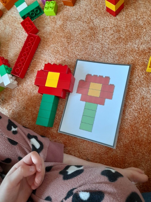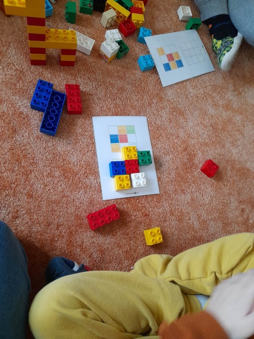 Zaczęliśmy od gimnastyki pamięci podczas gry w memory na tablicy interaktywnej, następnie przeszliśmy do zabaw na dywanie, podczas których układaliśmy różne kształty według wzoru oraz trenowaliśmy kodowanie kolorami. Na koniec jeszcze krótkie zajęcia plastyczne i każdy mógł otrzymać trójwymiarową figurkę, na pamiątkę wspólnie spędzonego Dnia Klocków Lego.