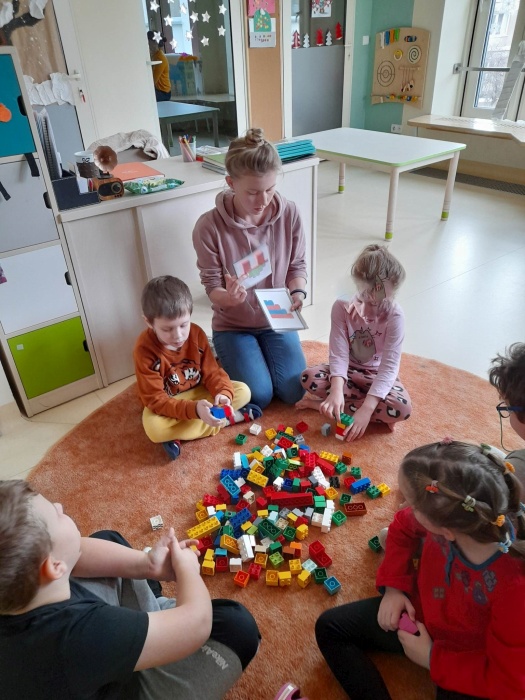 27.01.2023 roku dzieci z grupy 5 i 6 zebrały się, aby spędzić Dzień Klocków LEGO na wspólnej zabawie. Jednak wszyscy wiemy, że nawet podczas zabawy ćwiczymy ważne dla dzieci umiejętności.