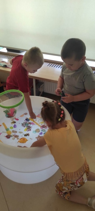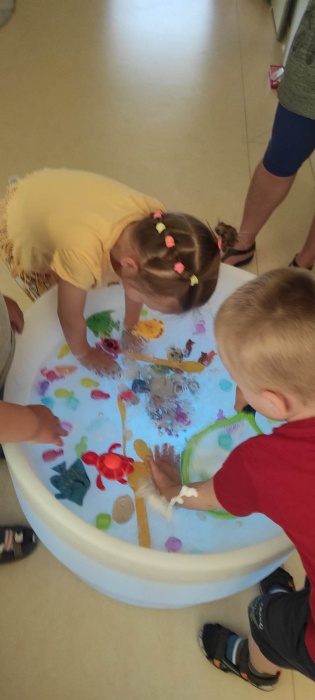 Przedszkolaki z grupy I i II poczuły przedsmak wakacji biorąc aktywny udział w poszukiwaniu morskich skarbów. Dzieci łowiły kolorowe perły, muszle, wielobarwne rybki. Poczuły na twarzach morską bryzę a na rękach i dłoniach morską pianę. Szum morza w pięknych muszlach pozostanie z nami na dłużej.