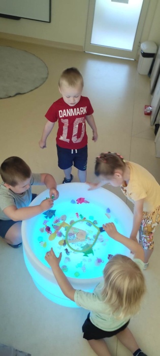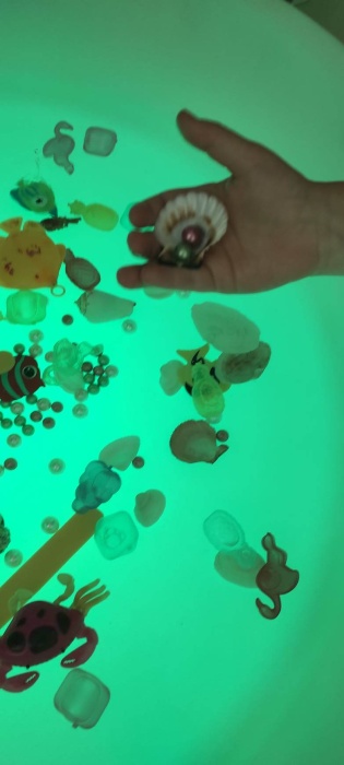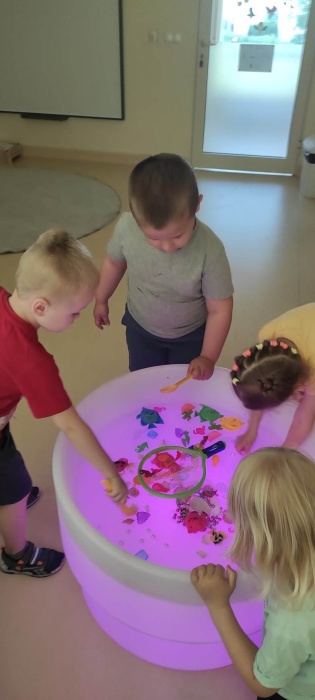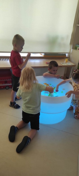 Wakacje za pasem. wakacje tuż, tuż. Wszyscy czekamy na nie z utęsknieniem! Dlatego w czerwcu w ramach projektu WIE „Barwy świata w mojej dłoni-światłem malowane” w naszym przedszkolu odbyły się zajęcia polisensoryczne z wykorzystaniem świetlnego stolika.