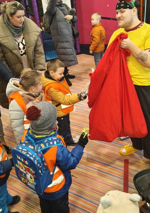 Już na miejscu w szatni nasi podopieczni byli pod wielkim wrażeniem wspaniałych atrakcji jakie przed sobą ujrzeli. Zanim jednak ruszyliśmy w stronę emocjonującej zabawy, przewodnik który się z nami przywitał, opowiedział nam o tym wyjątkowym miejscu i zapoznał nas z zasadami bezpieczeństwa. Z okazji warsztatów jakie nas czekały, nadał nam sympatyczną nazwę „Pierniczkowe Ludziki”, aby łatwiej nas potem znaleźć. Tak więc gdy wszystko zostało wytłumaczone, „Pierniczkowe Ludziki” pod nadzorem swoich opiekunów rozbiegły się we wszystkie strony, aby zjechać ze zjeżdżalni, wspiąć się gdzie się tylko dało, pokonać liczne tunele i przeszkody lub zanurkować w wielkim basenie z kulkami. Wszyscy bawili się świetnie, ale nagle na moment trzeba było przerwać harce wszelakie i zejść z tych fantastycznych konstrukcji, aby złapać za fartuch i kucharskie czapki! W kuchni po brzegi wypełnionej kolorowymi lukrami i posypkami, nasi adepci piernikowej sztuki zasiedli do stołu, aby uwolnić swą nieograniczoną kreatywność i ozdobić przygotowane wcześniej przez obsługę pierniczki! Zabawy i skupienia nie brakowało do ostatniego okruszka. Zaangażowanie było tak duże, jakimś cudem, w trakcie pracy część lukru można było znaleźć na uśmiechniętych buziach. Nasz przewodnik, był pod wrażeniem widząc jak bardzo pochłonęły nas te warsztaty. Każdy uczestnik zajęć ozdobił cztery ciasteczka i zapakował je w ozdobną torebkę. Aczkolwiek w niektórych paczkach, niektórym zabrakło nagle parę sztuk i tylko oblizywanie ust zdradzało co się z nimi właśnie stało. Nic dziwnego, bo przecież wszystkie pierniczki wyglądały tak pysznie! Po przygodzie w warsztatach wróciliśmy jeszcze do wcześniejszej zabawy, która trwała, aż wszystkim nie starczało już więcej sił. Czas już było kończyć, podziękowaliśmy animatorom za cudownie spędzony czas i otrzymaliśmy nieco upominków z wielkiego worka z prezentami. Wróciliśmy do przedszkola uradowani i wspaniale nastrojeni na zbliżające się wielkimi krokami Święta.