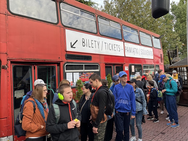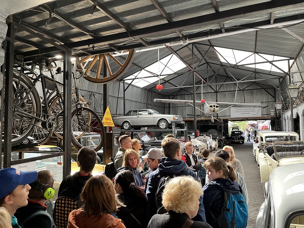 Drugim punktem naszej wycieczki było Muzeum Motoryzacji i Techniki w Otrębusach. Podczas zwiedzania nasi uczniowie mieli okazję zobaczyć kolekcję zabytkowych pojazdów, które są już niespotykane na naszych drogach. Pani przewodnik ciekawie opowiadała niezwykłe historie wybranych pojazdów. Poznaliśmy też liczną kolekcję unikatowych rekwizytów. Największym zainteresowaniem cieszyły się samochody oraz pojazdy, które brały udział w produkcjach filmowych. Po zapoznaniu się z całą ekspozycją uczestnicy wycieczki udali się na przejażdżkę po okolicy angielskim autobusem. Na koniec zjedliśmy smaczny posiłek.