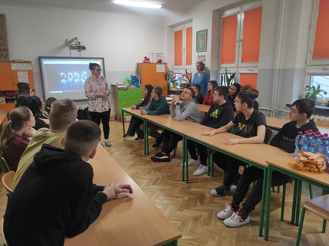 Ale opowiedzmy, jak to było, co się działo. W czwartek, 23 stycznia 2025 roku, już na pierwszej lekcji, wszystko zaczęło się bardzo dobrze: od lekkiego niepokoju (jak to będzie) pomieszanego z radosnym poczuciem, że wyruszamy na niecodzienne spotkanie. W ramach Międzyszkolnego Programu Integracyjnego „Iskierka przyjaźni” grupa naszych uczniów została zaproszona do Szkoły Podstawowej z Oddziałami Integracyjnymi nr 73, przy ul. Białostockiej.