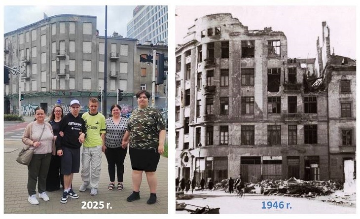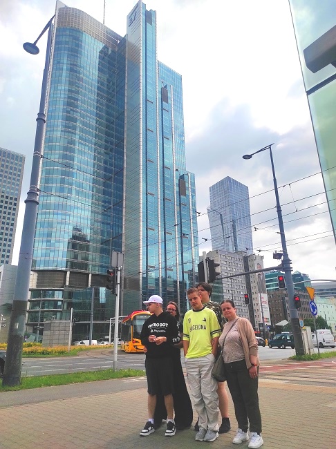 Mati, Konrad i Mateusz wraz z opiekunami wyruszyli we wtorek, 17 czerwca 2025 r. do miejsca pełnego życia, różnorodnych dźwięków i szklanych, wysokich budynków. Rondo ONZ, jako obszar edukacyjnych działań w ramach lekcji historii, przypomniał uczniom o przeszłości Warszawy. Tej z czasów zaborów, kiedy mieszkańcy budowali nowe kamienice, z czasów okupacji i Getta Warszawskiego oraz z czasów powojennych. Podczas zajęć uczniowie poznawali lokalną historię.