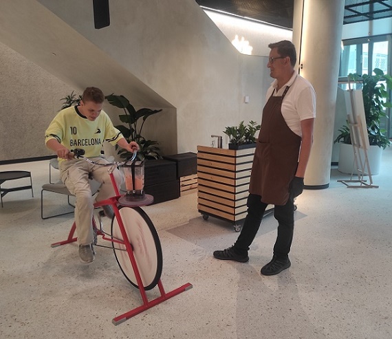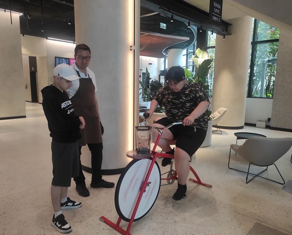 Na zakończenie zajęć na uczniów czekała wyjątkowa niespodzianka. Dzięki mamie Konrada chłopcy wzięli udział w aktywizującej akcji: pedałowali na rowerze i blendowali w ten sposób owocowy mix. Był ruch, sport, odpoczynek i orzeźwienie zdrowym koktajlem. Dziękujemy pani Moniko![]()