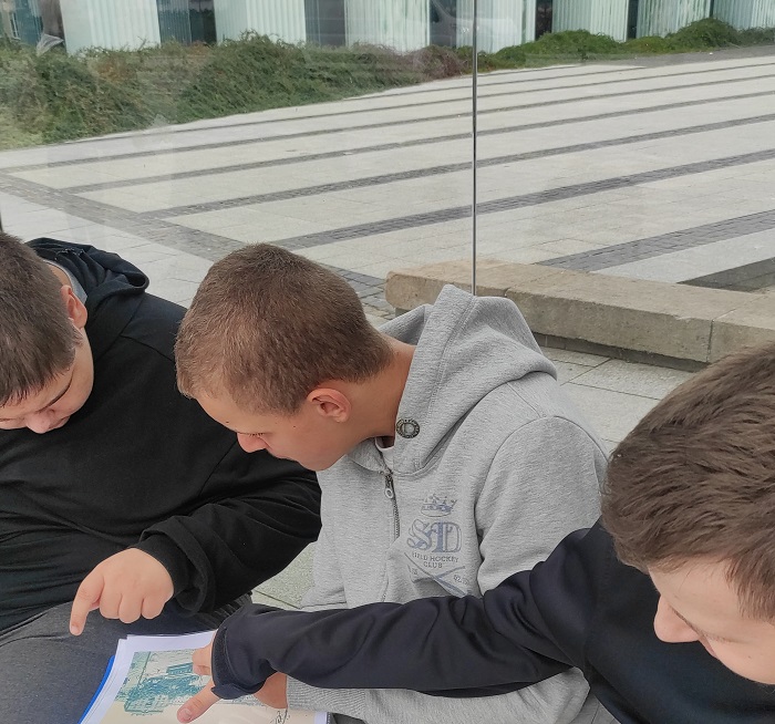 We wtorek, 23 września 2025 roku, Mateusz, Konrad i Matvii wyruszyli na lekcję historii w terenie. Tym razem miejscem varsavianistycznych poszukiwań uczniów pod kierunkiem nauczyciela, stał się dawny dziedziniec Pałacu Krasińskich, decyzją króla Stanisława Augusta Poniatowskiego udostępniony mieszkańcom, jako przestrzeń publiczna.