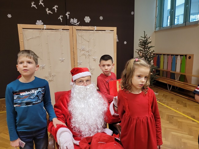 W końcu zadźwięczały dzwonki u sań… Dla każdego Mikołaj miał prezent, uśmiech, dobre słowo. Na twarzach uczniów malowały się radość, niedowierzanie, zaskoczenie. Emocje sięgały zenitu. Prezenty sprawiły mnóstwo frajdy, zadowolenia. Z niecierpliwością prezenty zostały rozpakowane, obejrzane, a niektóre skonsumowane. Każdy chciał mieć zdjęcie z Mikołajem, żeby pamiętać o miłych chwilach…